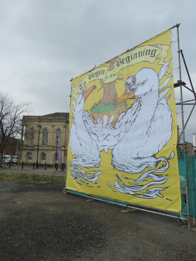 As part of the Art Across The City project funded by Swansea’s public art charity LOCWS International, David Long‘s artwork “To Begin At The Beginning” has been erected close to the Dylan Thomas Centre.