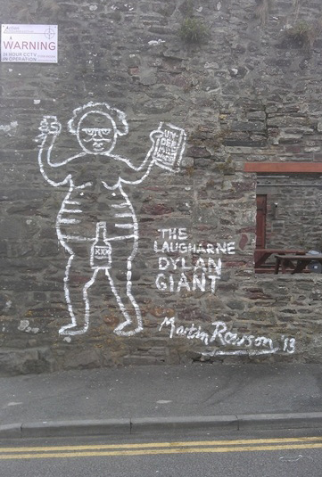 During the weekend, cartoonist and writer Martin Rowson drew an irreverent Cerne Abbas giant style portrait of Dylan Thomas on the wall opposite the Three Mariners Pub. The portrait received a mixed reaction and news emerged that it had been removed using a power washer shortly after the festival ended.