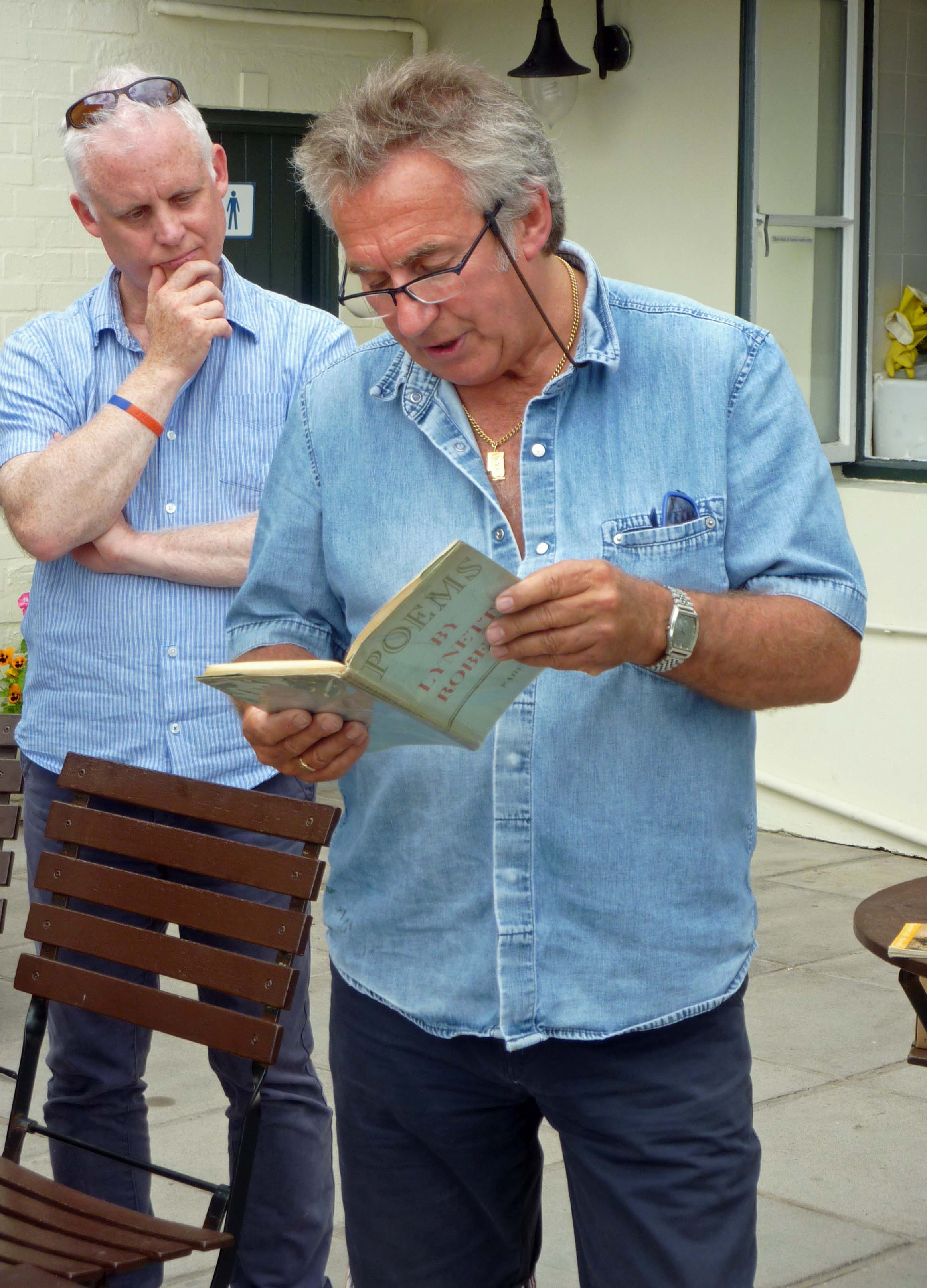 The tour starts on the patio of the Boathouse, with an introduction from Dr Bronwen Price of Literature Wales, and she hands over to our tour leaders, the leading Dylan Thomas experts, Professor John Goodby of Swansea University, and Jeff Towns, the bookseller, Dylan Thomas collector, and chairman of the Dylan Thomas Society. We hear how the stunning landscape that can be seen from the Boathouse can claim to be a cradle of Welsh literature in English, and Jeff Towns illustrates the point with the display of original literary publications that feature writers who had connections to the area, such as Keidrych Rhys, Lynette Roberts, Alun Lewis, and of course Dylan Thomas. There is a reading of Lynette Roberts’ beautiful poem addressed to fellow poet, Alun Lewis, “Poem From Llanybri”, and so the relaxed and informative tone is set for the rest of the tour.