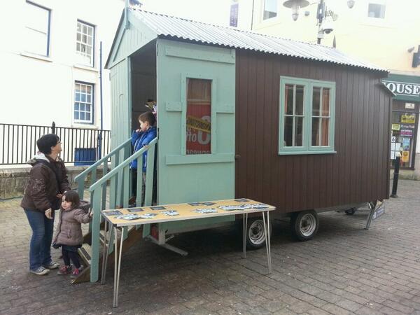The replica of Dylan’s Laugharne writing shed made it’s debut on the road when it visited Carmarthen’s Merlin’s Walk shopping centre on March 1st. The shed is a nearly life size copy complete with replica contents and travels on a trailer to visit local schools and high-profile events such as the National Eisteddfod, the Royal Welsh Show, and The Hay Festival.