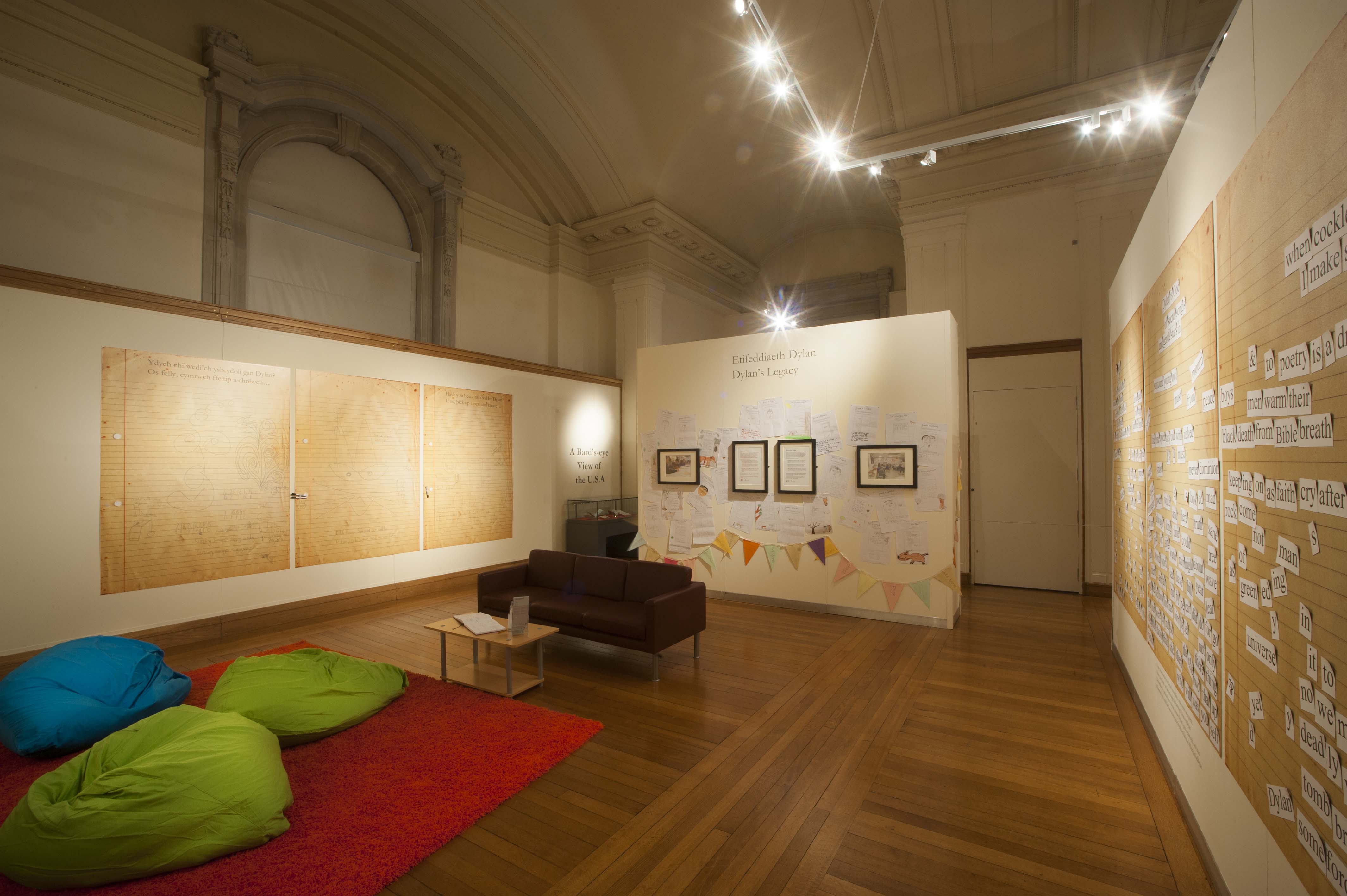 The main Dylan exhibition takes visitors on a beautifully presented chronological tour through the poet’s life and work, with manuscripts, letters, personal documents, artwork, photographs and sound recordings offering an intimate insight into Dylan’s world. The tour is punctuated by interactive exhibits including a poet’s pub where poems are on tap, a traditional typewriter wired up to send tweets, a Llareggub town model, and a giant gramophone with screen attached that shows footage from the wartime propaganda films scripted by Thomas.